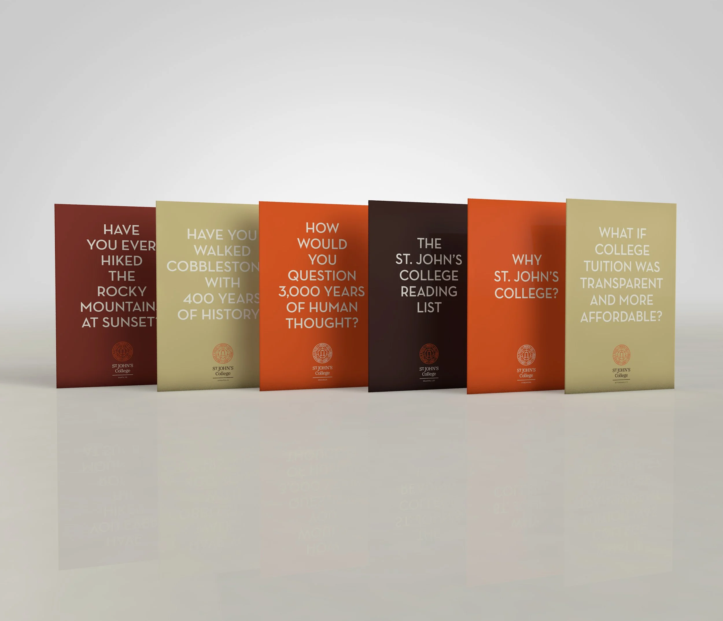 At the heart of St. John’s College is a liberal arts curriculum focused on many of the greatest books and most important questions in history. This is a curriculum unlike any other. Therefore why would the College publish a viewbook like all the others? Instead, DISTINC_ partnered with the admissions team at St. John’s to develop a seven-part viewbook series inspired by the seven liberal arts. It fit. And when people experienced the cumulative effect of these seven books hitting their mailboxes, they fell in love seven different ways.